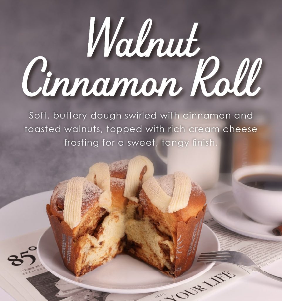 Come by and try our Walnut Cinnamon Roll today — a perfect way to indulge in a timeless favorite with a new look!